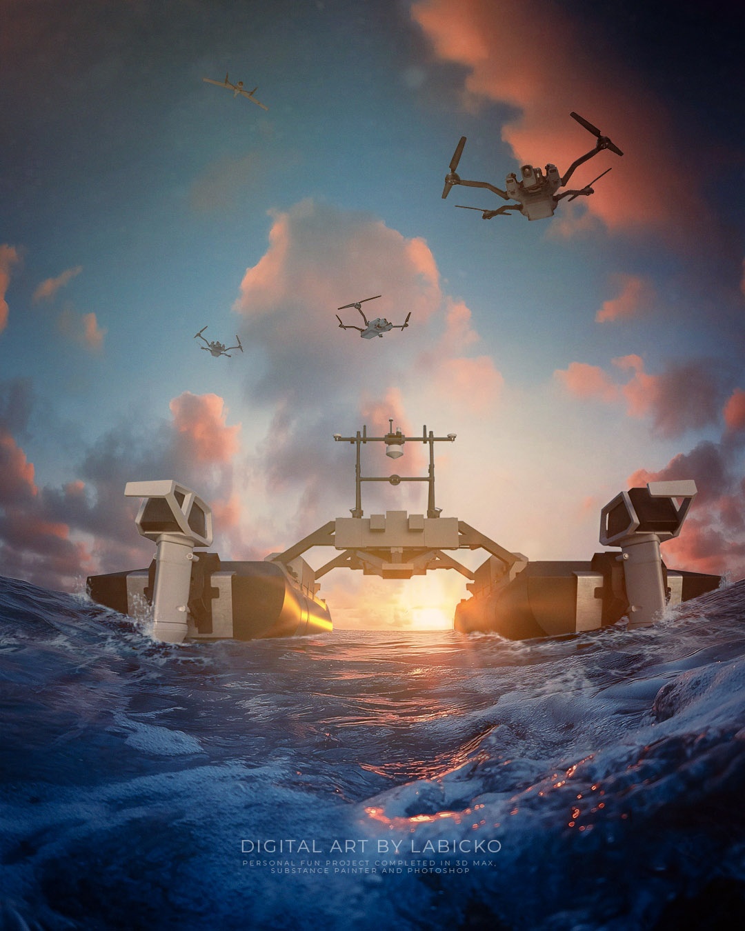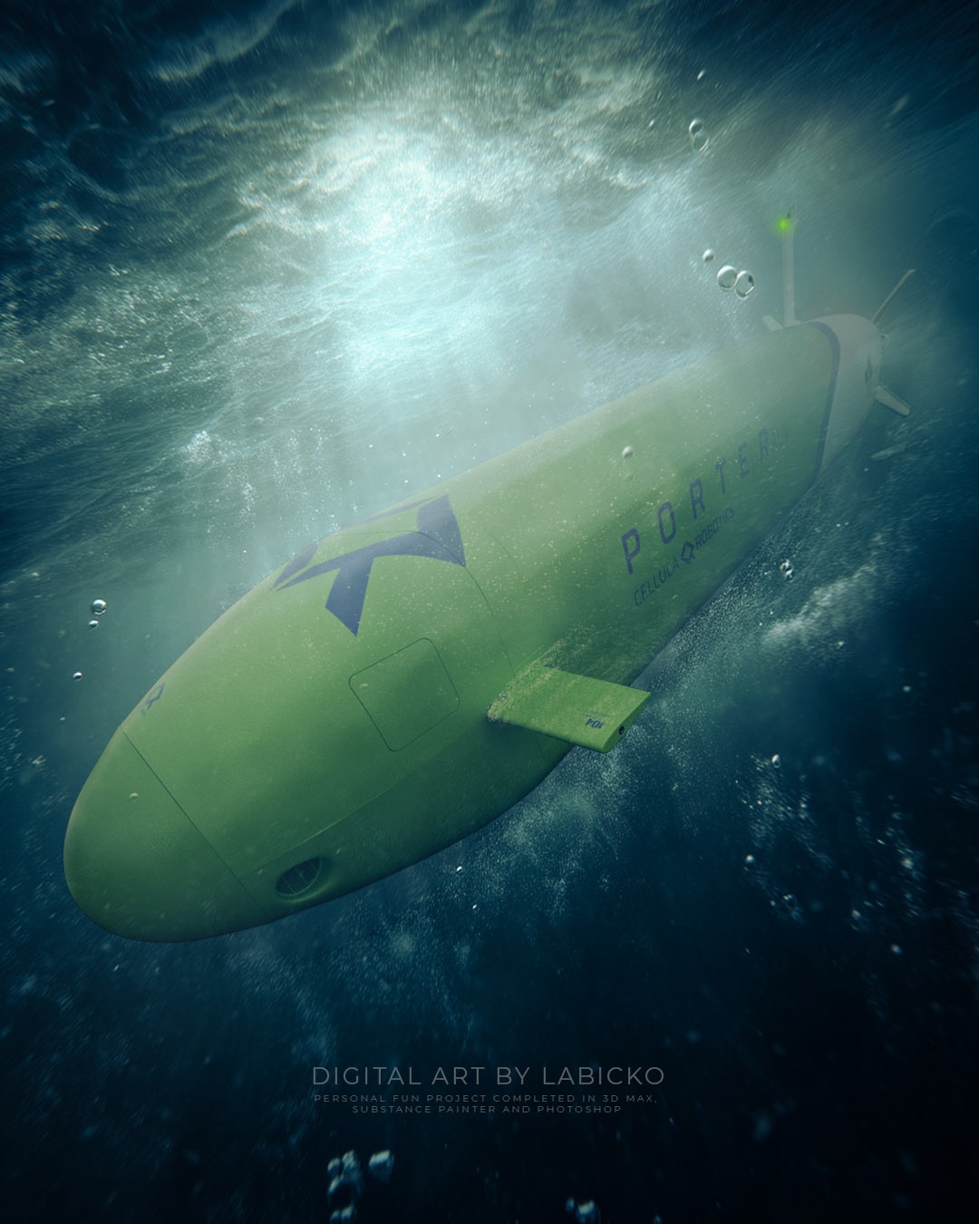 Personal project completed in 3D MAX, Substance Painter, and Photoshop. Marine Survey - scanning, using Boats, ROV, and AUV.